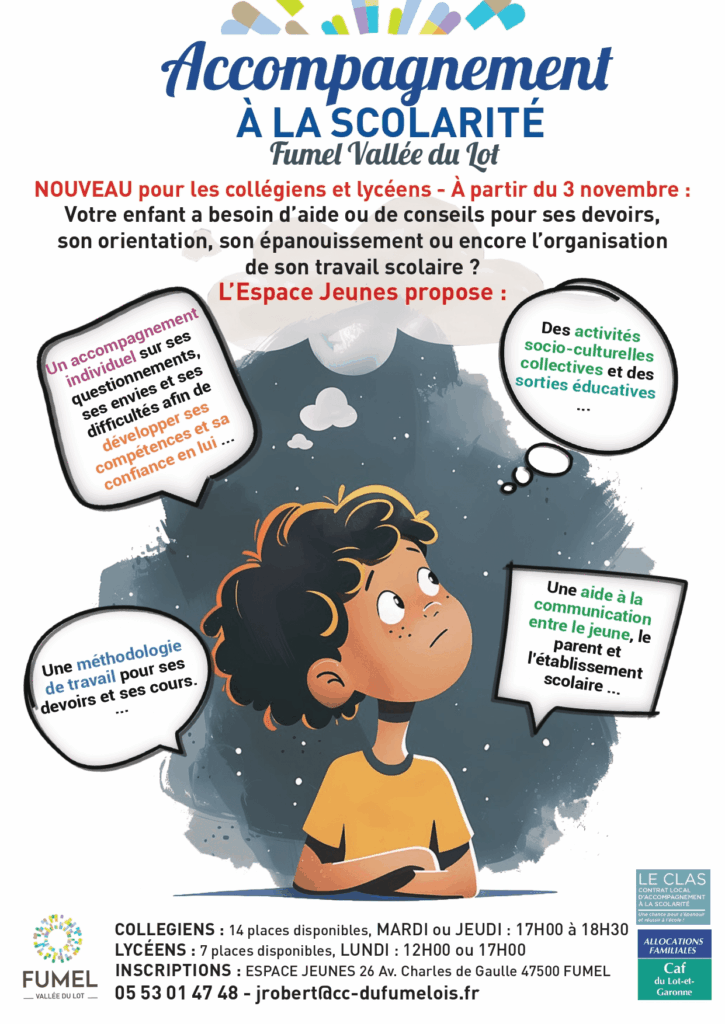 L’Espace Jeunes proposera, à partir de début novembre, un temps d’Accompagnement à la Scolarité à destination des collégiens et lycéens.